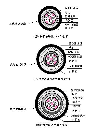 控制電路,其中綜合護(hù)套、鋁護(hù)套鐵路信號(hào)電纜具有一定的屏蔽性能,適宜于電氣化區(qū)段或其它有強(qiáng)